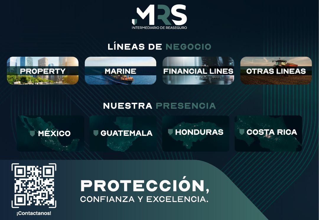 MRS es un corredor de reaseguro autorizado por la CNSF (Comisión Nacional de Seguros y Fianzas). Con presencia en México, Guatemala, Honduras y Costa Rica, ha ganado reputación por convertir lo complejo en soluciones claras, ágiles y estratégicas. Su enfoque va más allá del servicio técnico: MRS acompaña a sus clientes en cada paso, ayudándolos a tomar decisiones con certeza, cumplimiento y excelencia.
